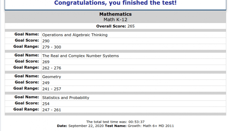 The scores are reported in RIT (Rasch Unit) scores, which provide a consistent scale for tracking student growth over time. RIT scores range from about 100 to 300, with higher scores indicating greater proficiency in the subject area.